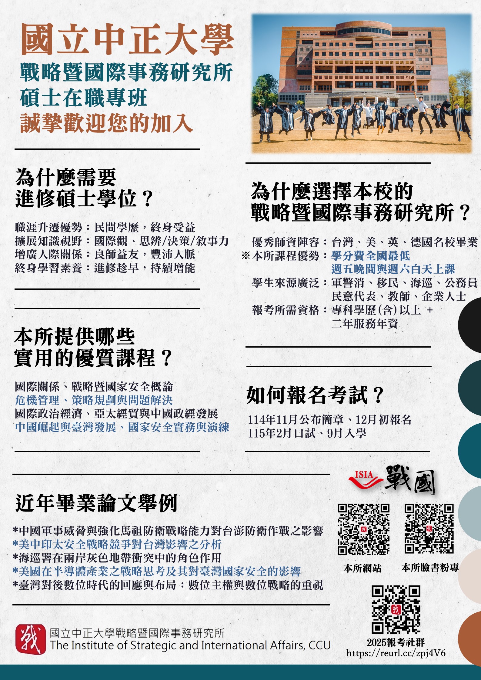 ⓃⒺⓌ<115碩專班招生>115學年度國立中正大學戰略暨國際事務研究所碩士在職專班 即將開始報名!